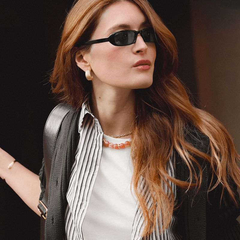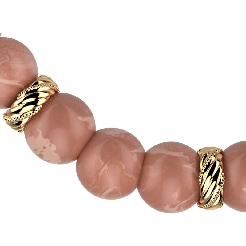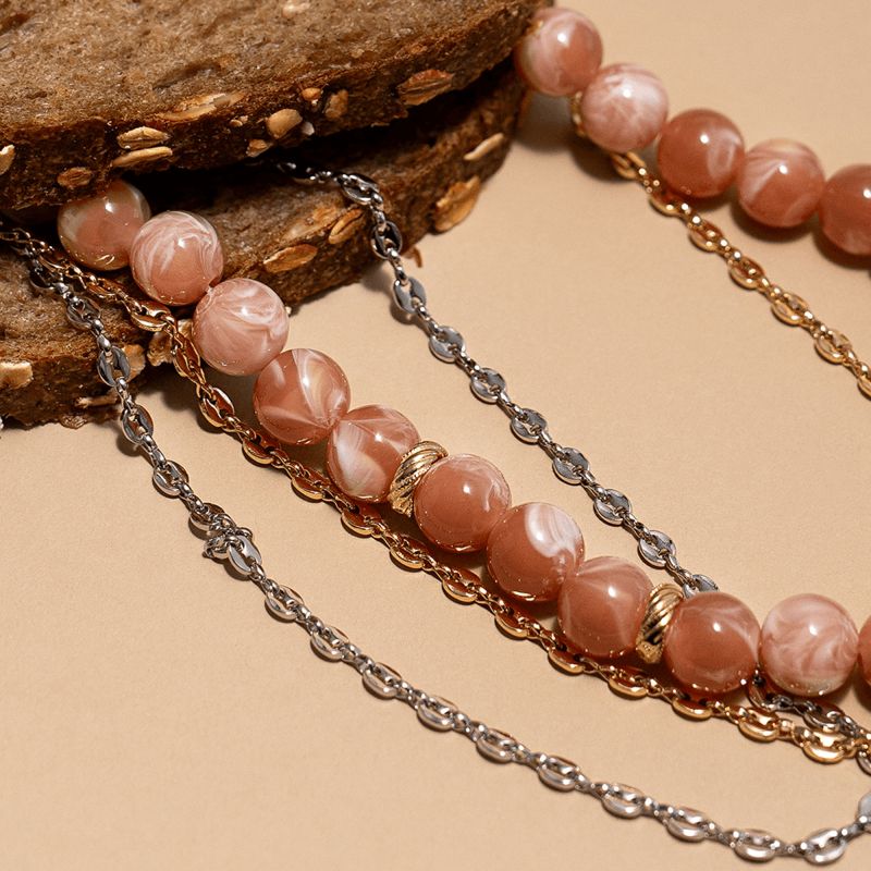 La ligne Olivia signée Les Georgettes prolonge l’esprit iconique de la marque en y apportant une touche colorée résolument mode. Ce collier court se distingue par ses perles en résine marbrée aux nuances roses généreuses, qui dialoguent avec élégance avec des anneaux en métal doré. Ces derniers reprennent le motif raffiné de la ligne Drapé, créant un contraste harmonieux et sophistiqué entre la douceur des perles et l'éclat de l'acier finition dorée.