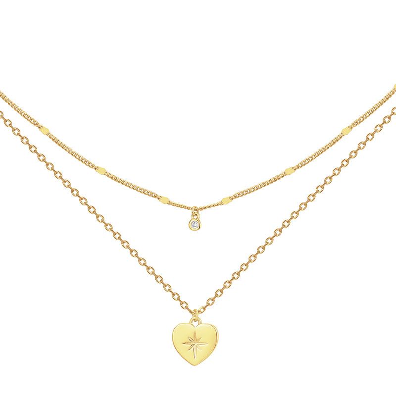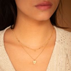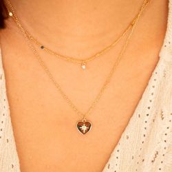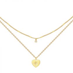 Collier double femme la garçonne cœur célesste plaqué or diamant 26700063 - fete-des-meres - edora