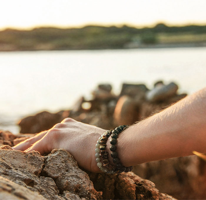 En bracelet homme, les bracelets perles sont devenus un incontournable. Ils se portent très bien seuls, mais aussi associés à un bracelet chaîne homme ou une gourmette homme, pour jouer sur le contraste entre métal et pierre. Côté féminin, ce type de bracelet femme fonctionne parfaitement en accumulation, notamment avec un bracelet fin femme ou un jonc, pour apporter de la texture et une touche lifestyle. Les pierres se déclinent dans une grande variété de couleurs, auxquelles on associe des vertus. Certaines combinaisons sont même recherchées pour leur compatibilité ou leur synergie. Résultat : un bijou simple, mais très expressif, qui s’adapte à tous les styles.