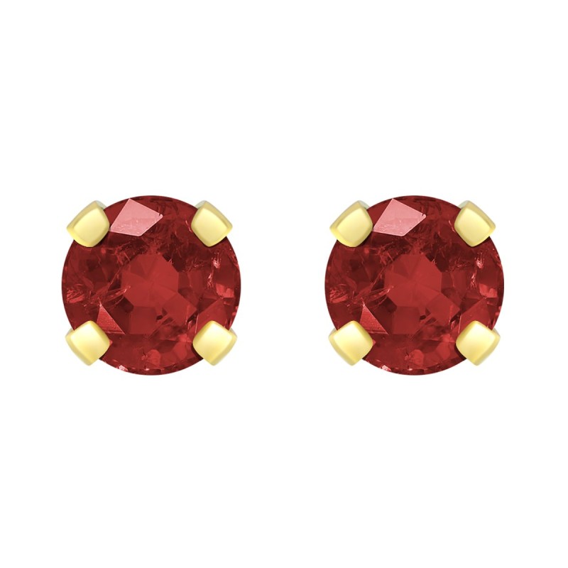 Boucles d'Oreilles Femme Puces OR 375/1000 Jaune et Rubis