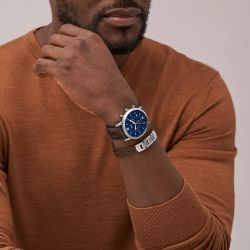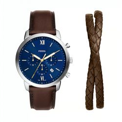 Le Coffret Montre Homme Neutra chronographe, en cuir, marron, et bracelet, Sku: FS6018SET propose une montre au design raffiné, dotée d'un boîtier en acier inoxydable de 44 mm et d'un bracelet en cuir marron, parfait pour souligner l'allure sophistiquée de celui qui la porte. Le chronographe à quartz assure une précision exemplaire, tandis que son étanchéité de 5 ATM la rend idéale pour un usage quotidien. Cadeau d'exception pour un anniversaire, cette montre FOSSIL reflète un mélange harmonieux entre tradition et modernité. Offrir cette montre, c'est choisir une pièce intemporelle qui allie style et fonctionnalité. Retrouvez la Coffret Montre Homme Neutra chronographe sur votre bijouterie en ligne EDORA.
