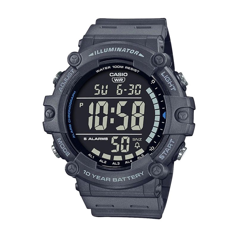 Fonctions : chronométrage 1/100 sec - 1 h, comptes à rebours, 5 alarmes quotidiennes, éclairage LED et calendrier automatique