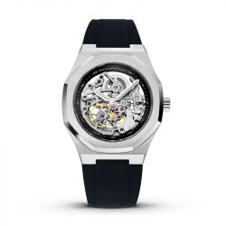 Dotée d’un bracelet en silicone noir à boucle ardillon, cette montre offre un confort idéal au quotidien tout en affirmant un look sport-chic. Son verre saphir et son fond transparent renforcent son allure sophistiquée, tandis que son étanchéité à 10 ATM (100 mètres) garantit sa résistance dans toutes les circonstances.