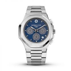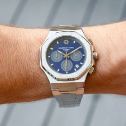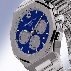 Découvrez la première montre chronographe signée Maison du Temps, un modèle alliant esthétique racée et précision technique. La MTGamma Bleu Chronographe séduit par son cadran bleu profond, animé de trois compteurs harmonieusement intégrés, évoquant l’univers de la performance et de la maîtrise du temps.