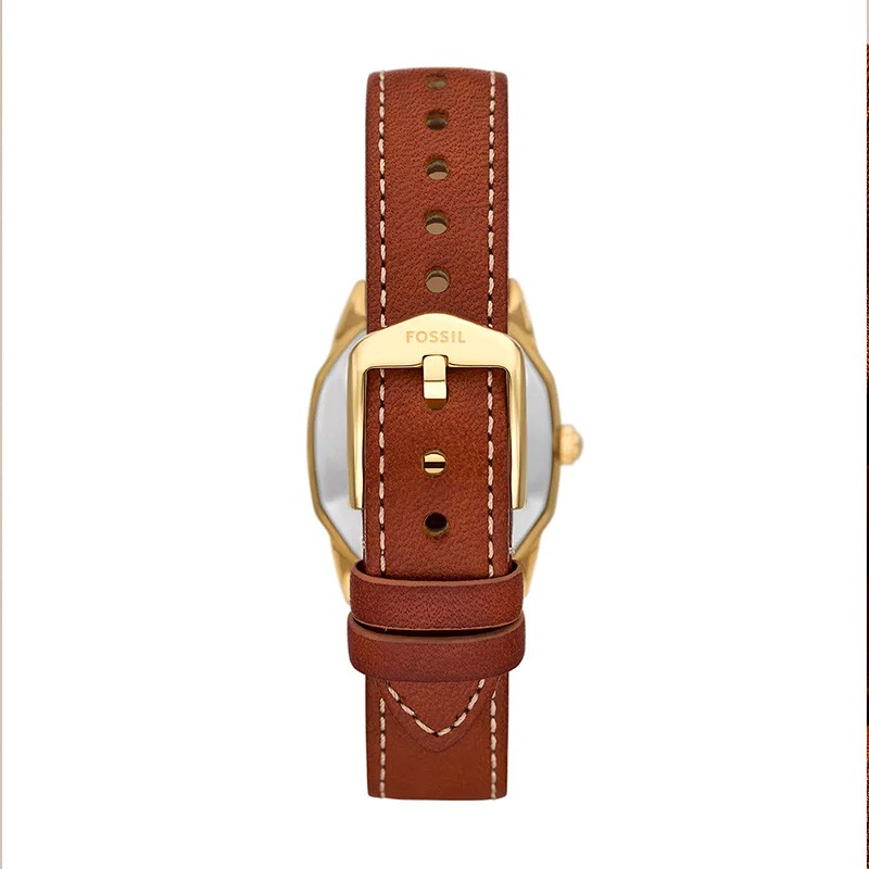 Montre Femme Fossil Harlow à trois aiguilles en cuir marron ES5364, une alliance parfaite entre élégance classique et modernité. Son boîtier octogonal de 27 mm, en acier inoxydable doré poli-brillant, encadre un cadran crème texturé pour une touche subtile et raffinée. Dotée d’un mouvement quartz à trois aiguilles, cette montre garantit une grande précision . Son bracelet en cuir marron, issu d’un processus de fabrication responsable certifié par le Leather Working Group, ajoute une note naturelle et chaleureuse. Avec un fermoir à boucle ardillon et une compatibilité avec les bracelets interchangeables de 16 mm, elle est aussi pratique qu’élégante. Étanche jusqu’à 3 ATM, elle s’adapte à toutes les occasions. Retrouvez la Montre Femme Fossil Harlow à trois aiguilles en cuir marron sur votre bijouterie en ligne EDORA.