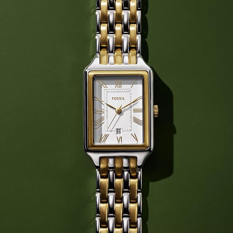 Montre Femme Fossil Raquel à trois aiguilles avec date, en acier inoxydable bicolore ES5368
