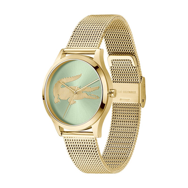 La Montre Femme Lacoste CROCODELLE Acier Doré 2001417 est une véritable déclaration de style, combinant audace et élégance. Avec son cadran de 36 mm, orné du célèbre crocodile en relief doré, elle capture parfaitement l'esprit iconique de Lacoste. Le bracelet en maille milanaise dorée ajoute une touche sophistiquée, tout en assurant un confort optimal. Étanche jusqu'à 5 ATM, cette montre s’adapte à toutes les situations, du quotidien aux occasions spéciales. Un accessoire chic et intemporel pour sublimer chaque tenue. Retrouvez la Montre Femme Lacoste CROCODELLE Acier Doré sur votre bijouterie en ligne EDORA.