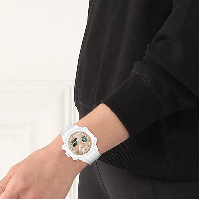 Elle se distingue par ses fonctionnalités avancées, incluant l’affichage du jour et de la date, ainsi qu’un éclairage intégré, parfait pour les journées bien remplies. Son bracelet en silicone blanc assure un confort absolu et une excellente durabilité, tout en ajoutant une touche de raffinement à votre poignet. Conçue pour accompagner toutes vos aventures, elle est étanche jusqu’à 10 ATM, idéale pour un usage quotidien et les activités aquatiques.