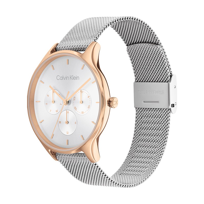 Matière du boitier : acier doré rose