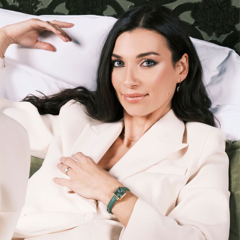 Le cœur de ce modèle réside dans son cadran vert émeraude à la finition ensoleillée, qui dévoile des reflets subtils et profonds à chaque mouvement. Accompagné de fins index et de délicates aiguilles dorées, il assure une lecture de l'heure à la fois claire et harmonieuse. Ce contraste entre l'éclat de l'or et la richesse du vert forêt confère à la montre une personnalité forte tout en restant parfaitement sophistiquée, idéale pour celles qui recherchent un accessoire distingué.