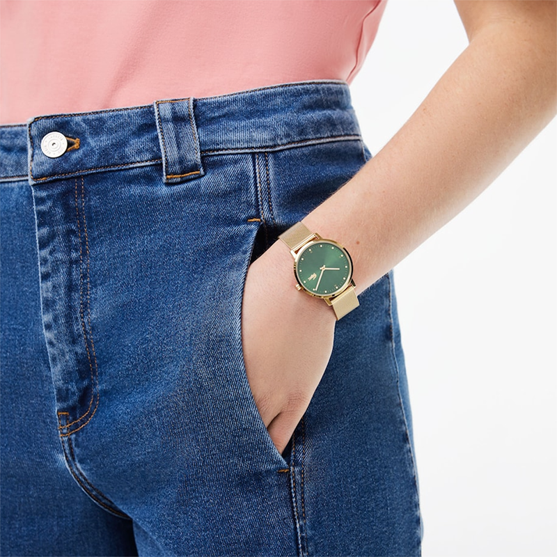 Montre Femme LACOSTE CROCORIGIN VERT Acier Doré