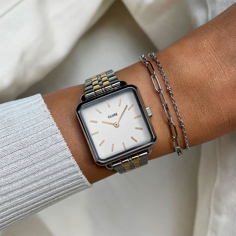 Coffret Montre Femme Cluse La Tétragone Acier Bicolore CG10326