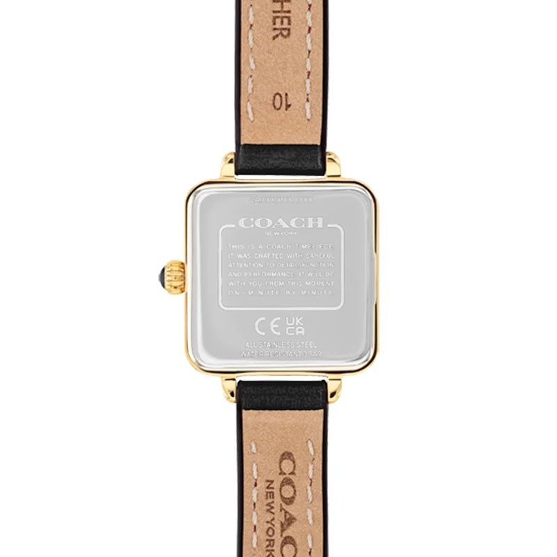 Le boîtier carré de 22 mm, en acier doré, s'harmonise parfaitement avec le bracelet en cuir noir, qui ajoute une touche de classicisme. Il se ferme grâce à une boucle simple et élégante, assurant un maintien sûr et un ajustement parfait sur votre poignet. Avec une étanchéité de 3 ATM, cette montre résiste aux éclaboussures et à la pluie, mais il est conseillé de ne pas l'immerger.