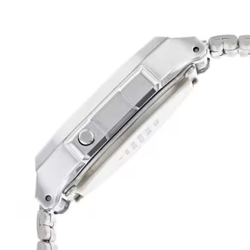 La Montre Mixte Digitale CASIO ICONIC Acier Inoxydable A168WEM-7EF incarne parfaitement l'alliance entre design rétro et élégance moderne. Son boîtier octogonal de 38,6 x 36,3 mm et son cadran argenté apportent un style raffiné et intemporel, tandis que le bracelet en acier inoxydable argenté garantit un confort et une durabilité exemplaires. Équipée d'un verre minéral robuste et d'un mouvement quartz fiable, cette montre offre une lisibilité claire grâce à son affichage digital. Étanche jusqu'à 1 ATM, elle est conçue pour une utilisation quotidienne sans compromis sur le style. Un choix parfait à offrir ou à s'offrir, cette montre est un symbole de l'élégance fonctionnelle. Retrouvez la Montre Mixte Digitale CASIO ICONIC sur votre bijouterie en ligne EDORA.
