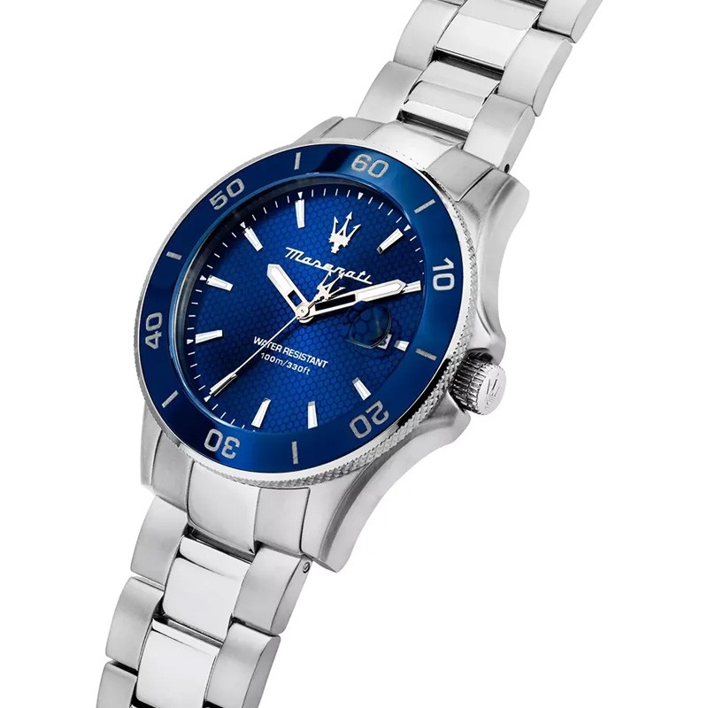 La montre homme MASERATI COMPETIZIONE en acier argenté R8853100036 incarne parfaitement l'esprit de compétition et le raffinement masculin. Avec un boîtier de 43 mm en acier inoxydable, cette montre arbore un cadran bleu sunray qui capte la lumière et ajoute une touche élégante. Équipée d'une lentille loupe pour une lecture facile de la date et d'un verre en cristal minéral résistant, elle est conçue pour affronter le quotidien. Son mouvement analogique assure précision et fiabilité, tandis que le bracelet en acier inoxydable, doté d'une boucle déployante sécurisée, garantit un port confortable et stylé. Étanche jusqu'à 10 ATM, cette montre est idéale pour l'homme actif. Un choix parfait pour un cadeau marquant, alliant fonctionnalité et sophistication. Retrouvez la montre homme MASERATI COMPETIZIONE en acier argenté sur votre bijouterie en ligne EDORA.