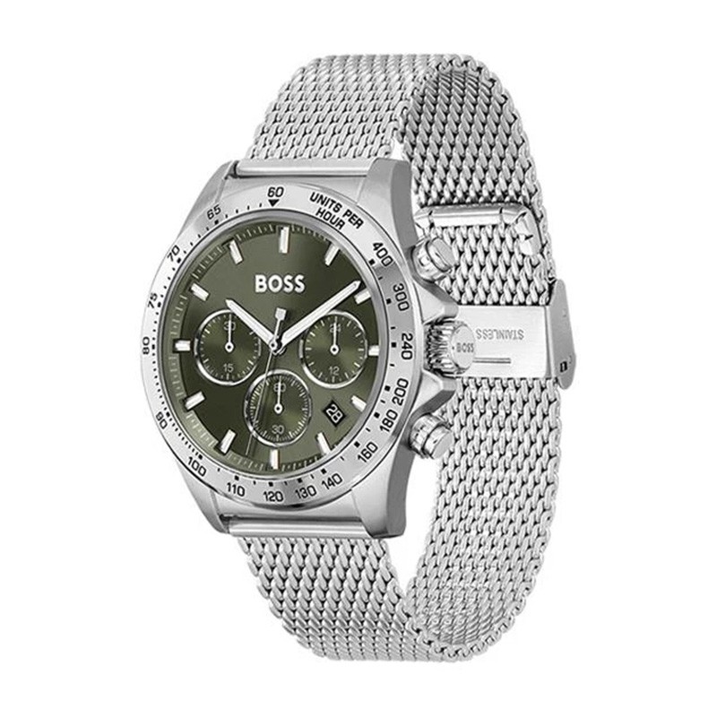 Montre Homme sport lux Hugo Boss acier blanc 1514020, une pièce qui allie subtilement élégance et esprit sportif. Dotée d’un boîtier de 43 mm en acier et d’un bracelet assorti en maille métallique, elle dégage une allure contemporaine et affirmée. Son cadran vert profond rehaussé de compteurs chronographes offre une touche audacieuse et sophistiquée. Propulsée par un mouvement quartz précis, cette montre assure une performance fiable au quotidien. Étanche jusqu’à 50 mètres, elle vous accompagne dans vos activités avec style. Idéale pour les hommes actifs en quête d’un accessoire alliant fonctionnalité et esthétique. Retrouvez la Montre Homme sport lux Hugo Boss acier blanc sur votre bijouterie en ligne EDORA.