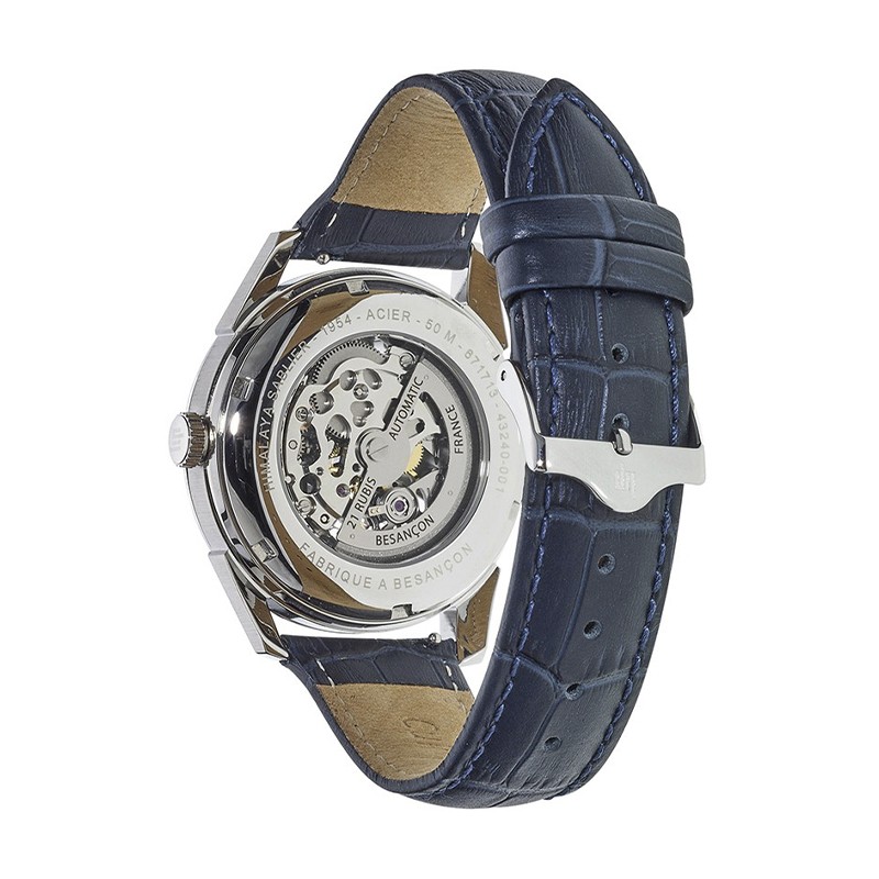Matière du bracelet : Cuir véritable vachette bleu foncé façon croco