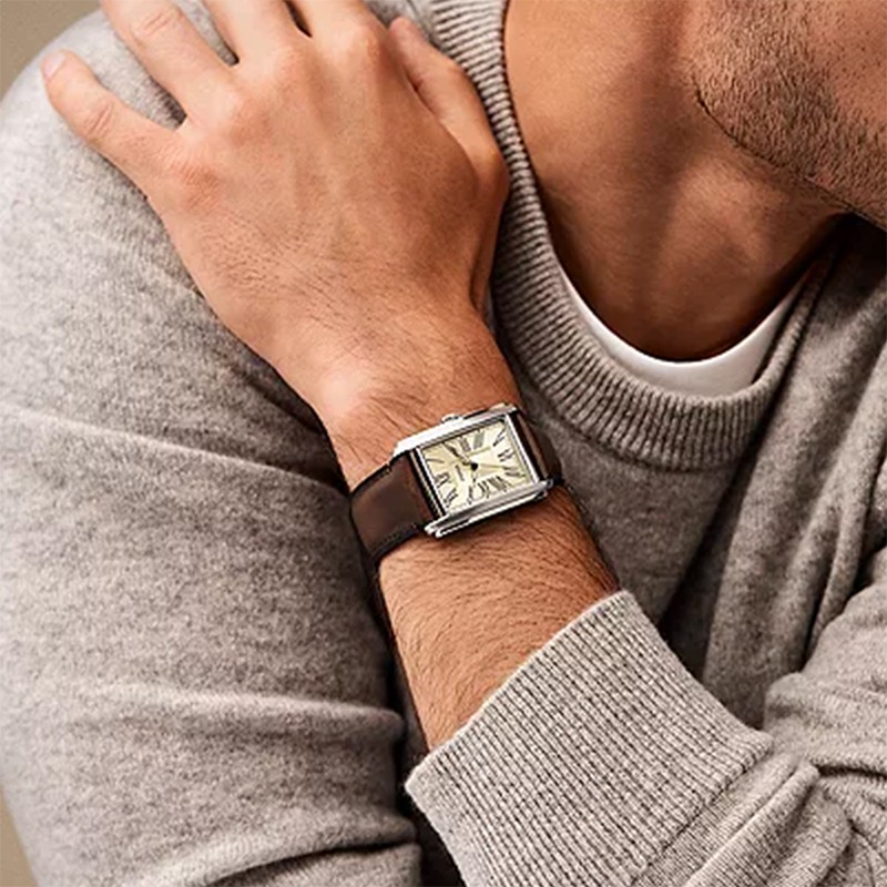 Élégance classique et fonctionnalité moderne se rencontrent dans la Montre Homme FOSSIL CARRAWAY CRÈME Cuir Brun. Dotée d'un boîtier rectangulaire de 30 mm en acier inoxydable couleur argent, cette montre capte l'essence du style traditionnel.
