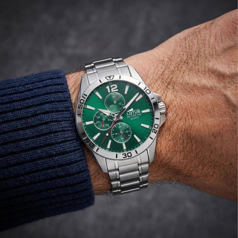 Montre homme Multifonction LOTUS cadran vert et acier 18812/7