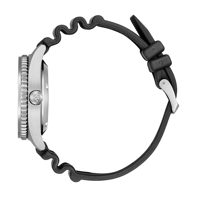Un boîtier rond de 41 mm en acier inoxydable d'une épaisseur de 13.7 mm offre une présence forte et durable au poignet. La montre arbore un cadran noir élégant, complété par des index lumineux pour une visibilité accrue dans les profondeurs sous-marines. Le mouvement automatique avec le calibre 8204-21A garantit une performance fiable sans le besoin de batterie.