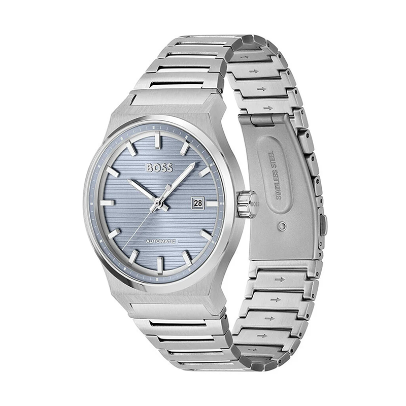 Montre Automatique Homme BOSS CANDOR BLEU Acier Argenté