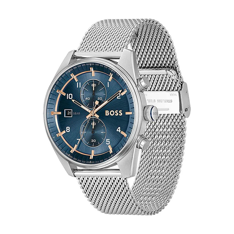 Montre Chronographe Homme BOSS SKYTRAVELLER BLEU Acier Argenté