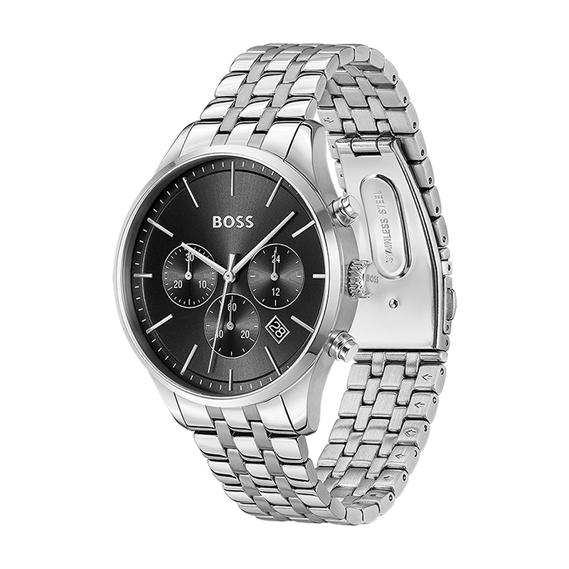 Montre Chronographe Homme BOSS AVERY NOIR Acier Argenté