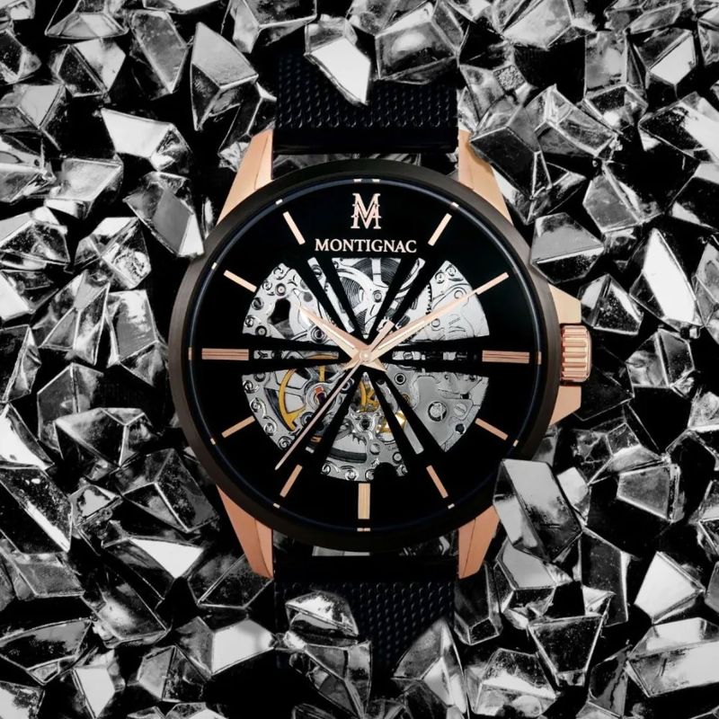 montre homme automatique MONTIGNAC origine acier noir MOPE19A08