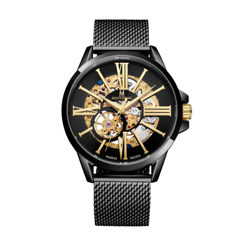 montre homme automatique MONTIGNAC origine acier noir MOW405
