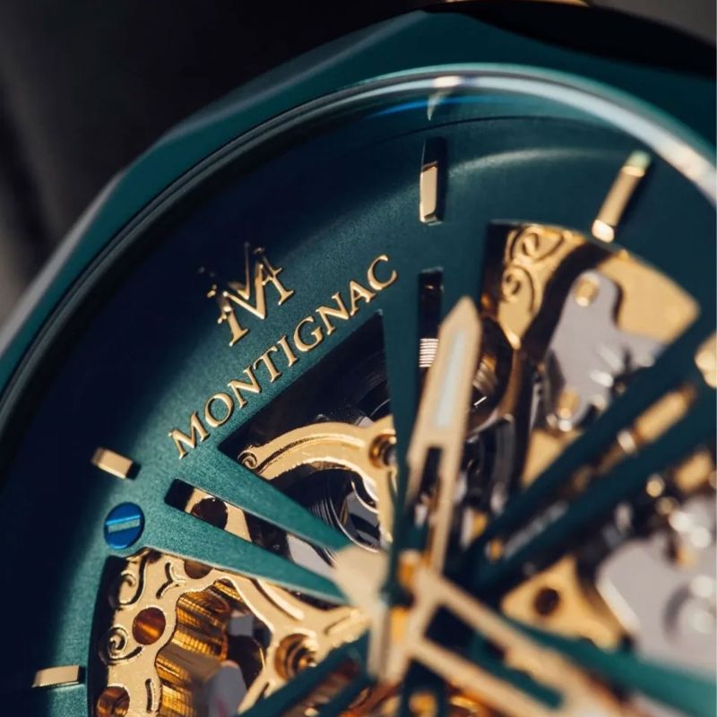 Laissez-vous envoûter par la MONTIGNAC MOW613, une pièce d’exception issue de la collection Origine qui marie audace chromatique et tradition mécanique. Dessinée et assemblée en France, cette collection revient à la forme ronde, élémentaire et centrale, s'inspirant de la pureté géométrique des premiers bâtisseurs de Montignac. Son boîtier parfaitement circulaire de 42 mm en acier doré présente des proportions équilibrées, sans excès d'épaisseur, offrant une douceur visuelle organique grâce à son poli intégral.