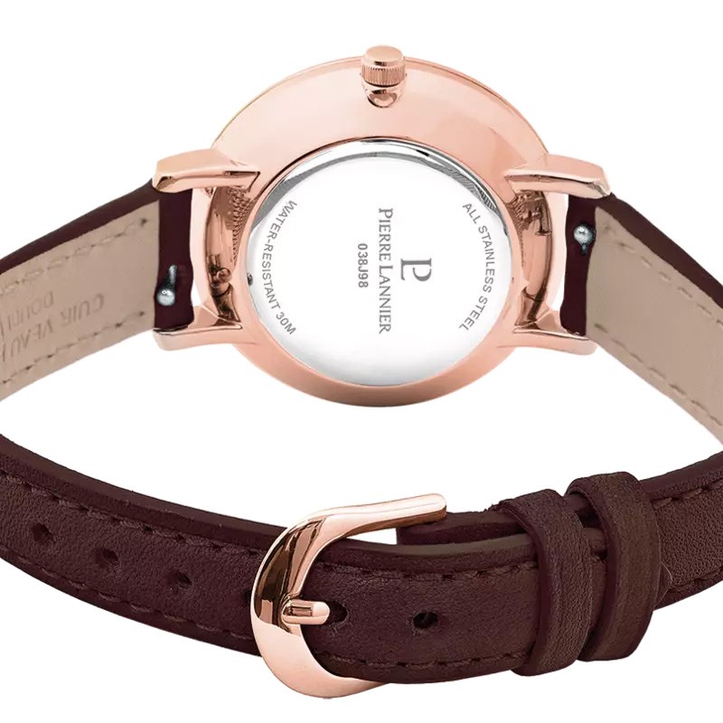Retrouvez la Montre Femme PIERRE LANNIER CHOUQUETTE Doré-rose Cadran Chocolat Bracelet Cuir Chocolat sur votre bijouterie en ligne EDORA.