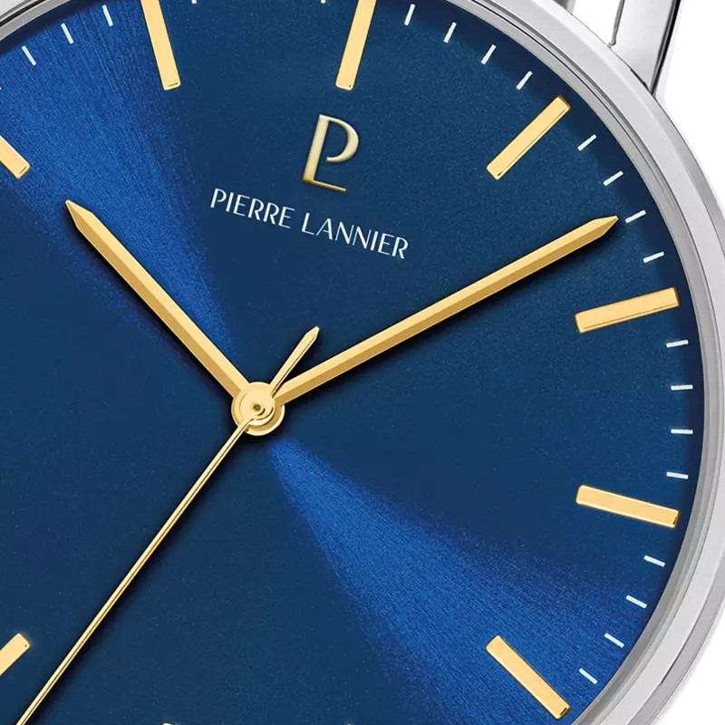 Montre Homme PIERRE LANNIER ESSENTIAL Argenté Cadran Bleu Bracelet Acier milanais Argenté 217G161