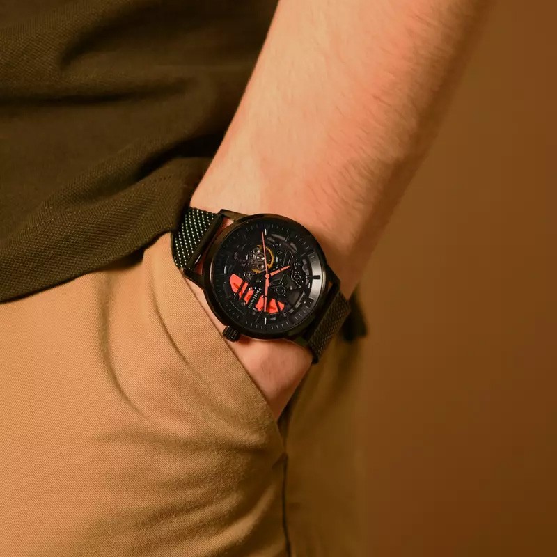 Affirmez votre style avec la montre automatique Paddock 338A459, une fusion parfaite entre performance et élégance urbaine. Inspirée par la puissance des voitures de course, elle associe un cadran squelette noir, un étrier orange vif, et un bracelet en acier milanais noir pour un rendu aussi audacieux que sophistiqué.