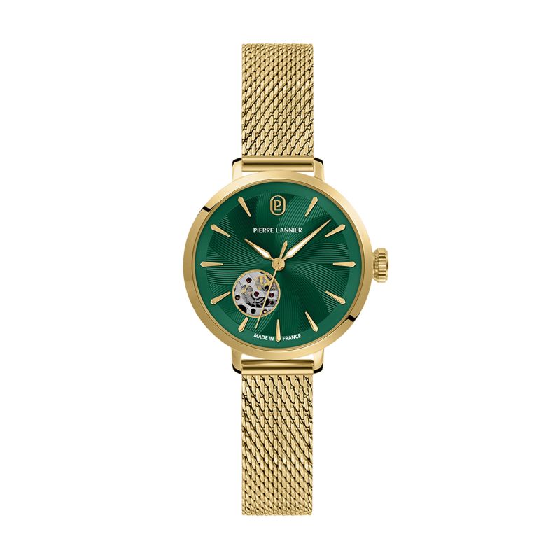 Montre Femme Automatique PIERRE LANNIER SOLINE Doré Cadran Vert Bracelet Acier milanais Doré 12 MM 139L572