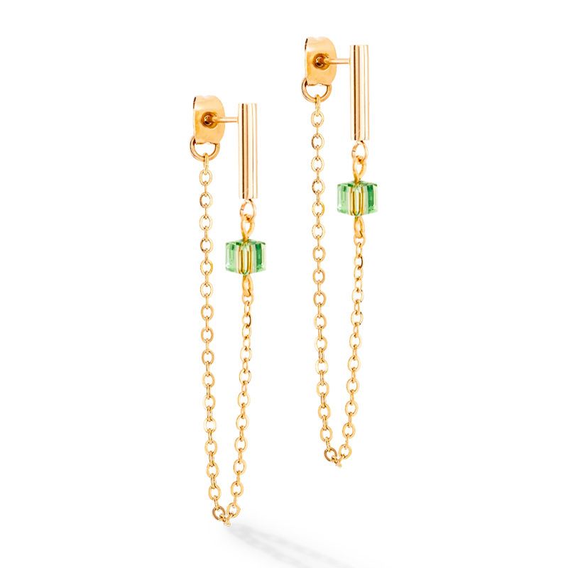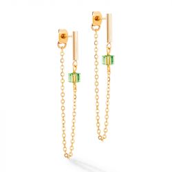 Boucles d’oreilles Femme COEUR DE LION Mini Cubes & Chain Or-Vert 5076/21-0516