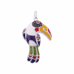 Collier femme pendentif toucan argent 925/1000 laqué multicolore et oxydes bq12144 - pendentifs - edora