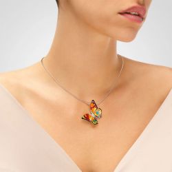 Collier Pendentif Papillon UNA STORIA Argent 925/1000 Laqué Multicolore et Oxydes BQ121184