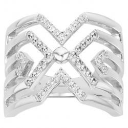 Ce bijou est façonné en argent 925/1000, un métal précieux qui assure une finition brillante et une qualité durable. D'un poids de 6,82 grammes, sa structure ajourée est mise en valeur par des lignes croisées et parallèles. Les sections en forme de V et la bande centrale sont délicatement pavées d'oxydes de zirconium, créant un point focal scintillant et contrastant avec l'argent poli.