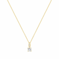 Le pendentif est réalisé en plaqué or, assurant une finition durable et une teinte chaude et luxueuse. Le motif se compose d'un oxyde de zirconium en serti clos, suspendu à une chaînette qui le relie à la chaîne principale. Cette composition en cascade crée un bel effet de mouvement et de brillance mesurée. Il est suspendu à une chaîne fine, dont la longueur est ajustable de 42 à 45 cm, grâce à une chaînette de rallonge pratique.
