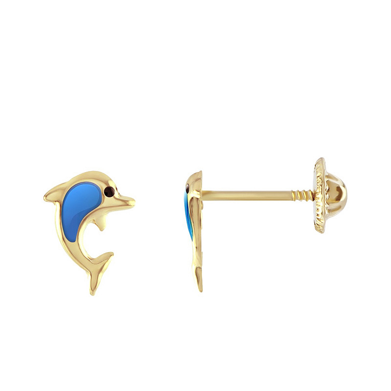 Toutes les petites filles passionnées par l'univers marin porteront fièrement ces boucles d'oreilles enfant puces dauphins en OR 375/1000 jaune. Fabriquées en or 9 carats, le motif dauphin est finement rehaussé de laque pour une touche de couleur charmante.