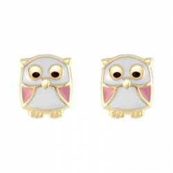 Ces jolies boucles d'oreilles enfant puces hiboux en OR 750/1000 jaune sont conçues spécialement pour les oreilles des petites filles malicieuses. À la fois ludiques et élégantes, elles sont fabriquées en or 18 carats et agrémentées de laque colorée pour un éclat subtil et une touche de couleur vive.