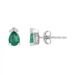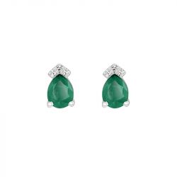 Boucles d'oreilles femme puces  edora or 750/1000 blanc, Émeraudes  et diamants edoa03817 - puces - edora