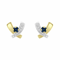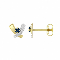 Boucles d’Oreilles Femme Puces OR 375/1000 Bicolore et Saphirs EDO9K8368S