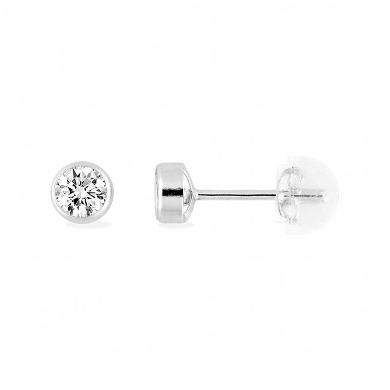 Boucles d’Oreilles Femme Puces OR 375/1000 Blanc et Oxydes EDO9K80374GZ