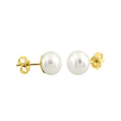 Boucles d’Oreilles Femme Puces OR 375/1000 Jaune et Perles EDO293011.P0