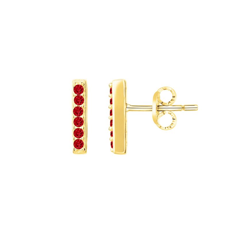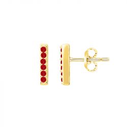 Ces boucles d'oreilles sont magnifiquement façonnées en plaqué or 3 microns, offrant une finition luxueuse et durable. Les spinelles synthétiques rouges apportent une richesse visuelle et brillent de toutes leurs facettes, captant la lumière et accentuant l'éclat du plaqué or.