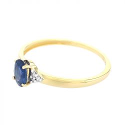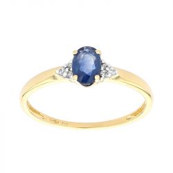 Bague Femme Solitaire Accompagné EDORA OR 750/1000 Jaune, Saphir et Diamants EDOK02317