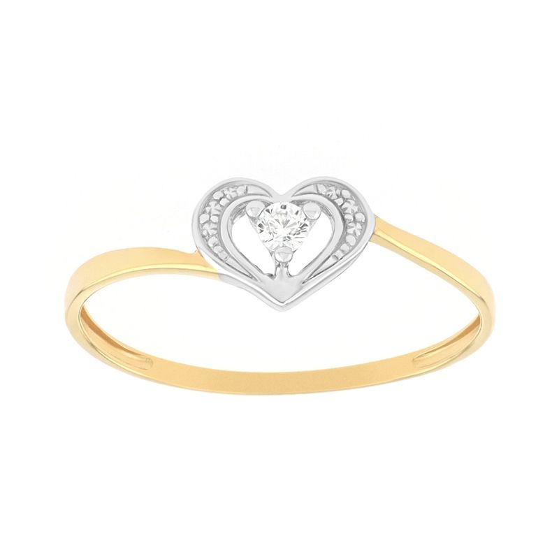 Bague Femme Solitaire Cœur OR 375/1000 Bicolore et Oxyde EDO09SA499BZ
