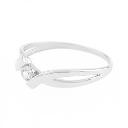 Avec ses courbes qui s’entrelacent dans un mouvement fluide, cette bague femme en or blanc 375/1000 révèle un solitaire d’oxyde de zirconium au centre d’un jeu de lignes modernes et élégantes. La pierre, sertie avec délicatesse, semble suspendue entre deux bras d’or qui se rejoignent sans jamais se toucher, comme une promesse silencieuse.