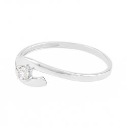 Élégante et contemporaine, cette bague femme en or blanc 375/1000 séduit par sa silhouette asymétrique au charme graphique. L’anneau, volontairement ouvert, vient délicatement enlacer une pierre centrale en oxyde de zirconium, comme suspendue entre deux courbes tendues l’une vers l’autre. Une mise en valeur subtile et moderne, soulignant toute la pureté du geste amoureux.